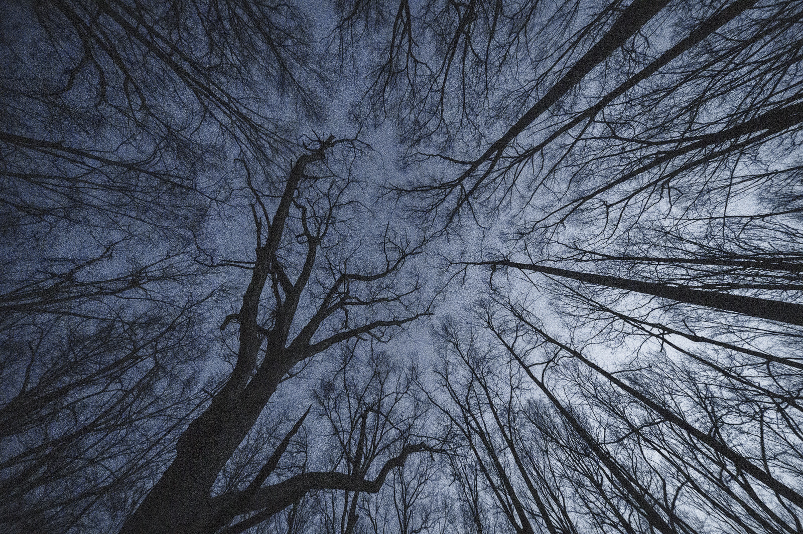 noir. Les légères feuilles bougent à peine,